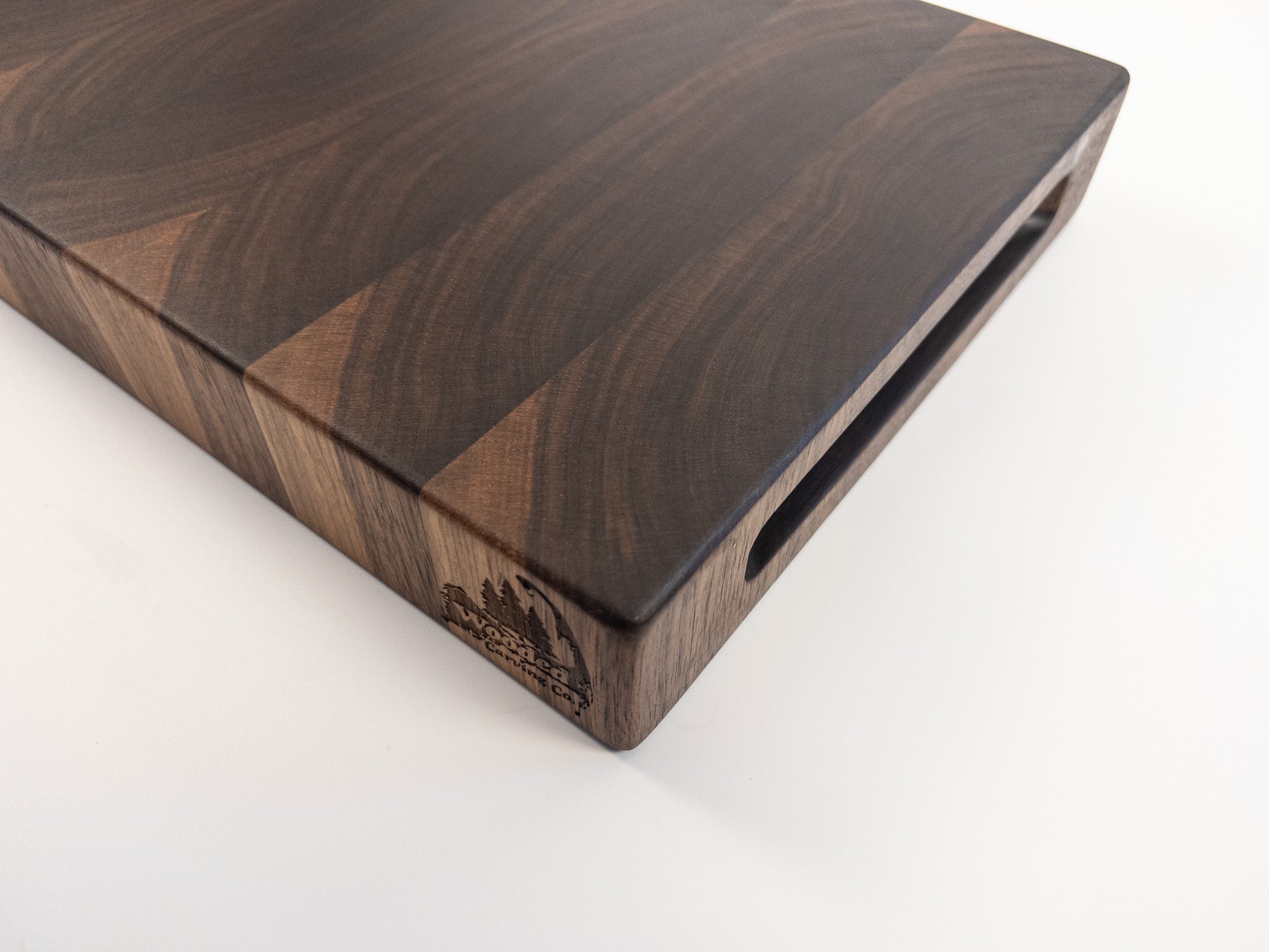 Walnut is softer than maple but still plenty durable for daily cutting. Its real magic is in the color: those deep tones develop even more character over time as the wood ages and the oil finish brings out the grain.