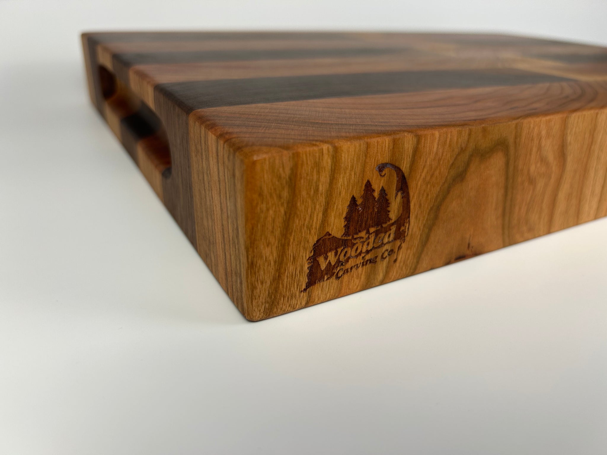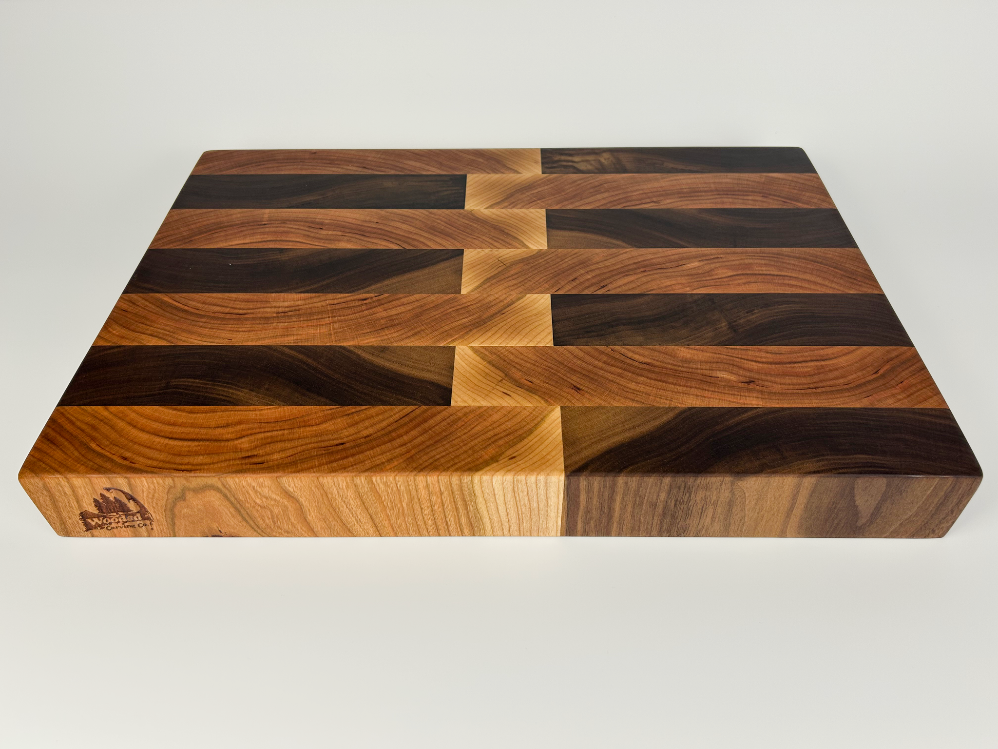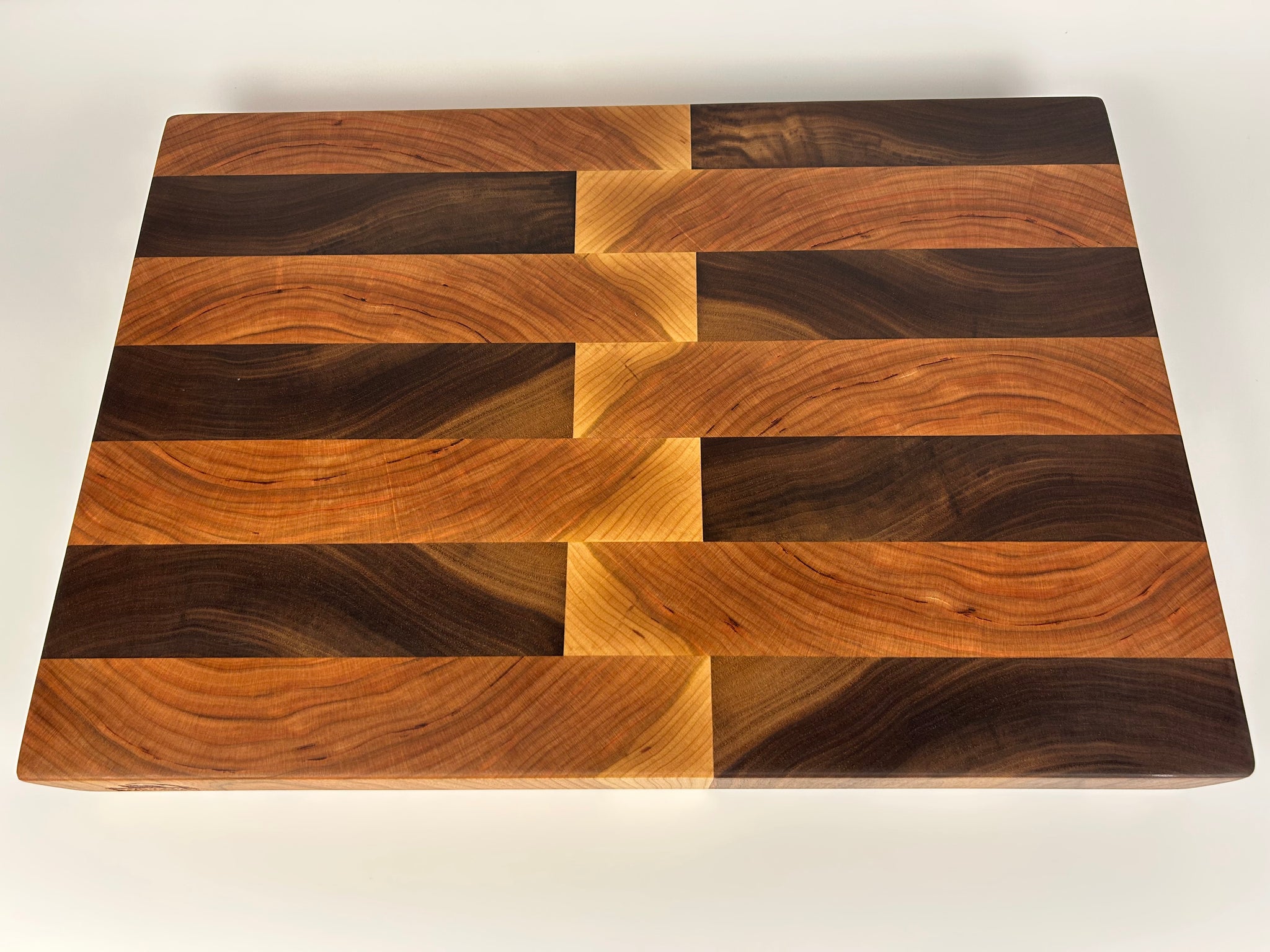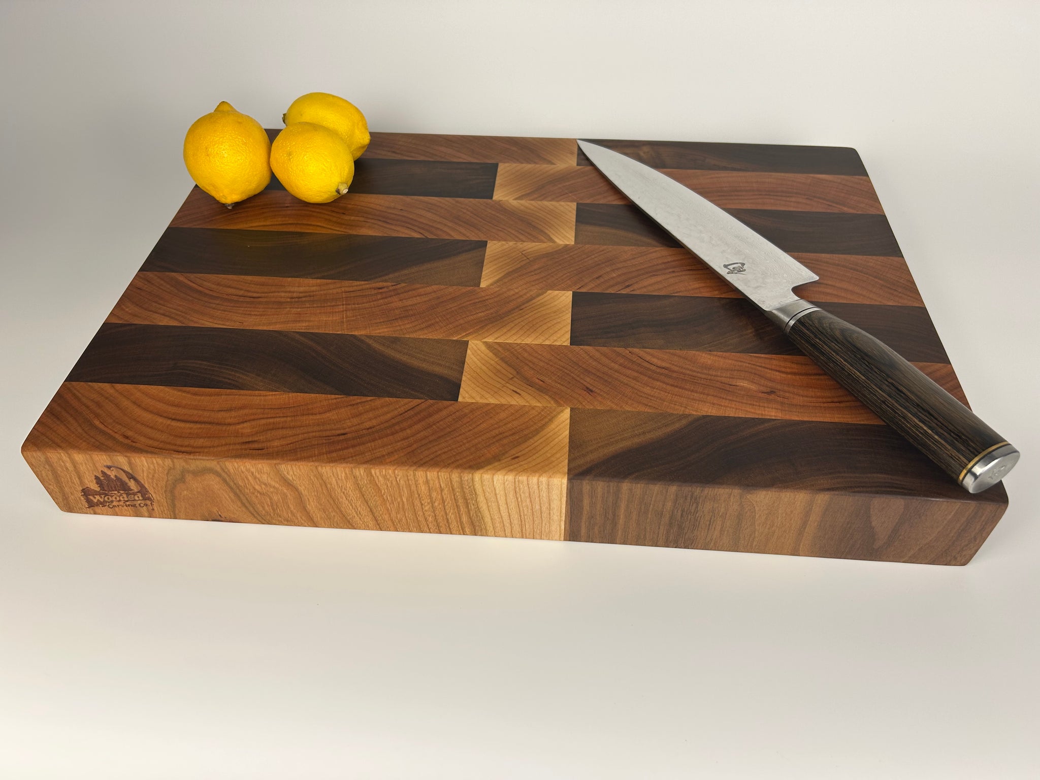 The Cherry Walnut Sundae end-grain cutting board combines durability with a unique charm. Crafted from sturdy walnut and cherry hardwoods, this board shows off its own one-of-a-kind pattern. Built to handle whatever job you throw at it, this board is a fun and lasting addition to your countertop.