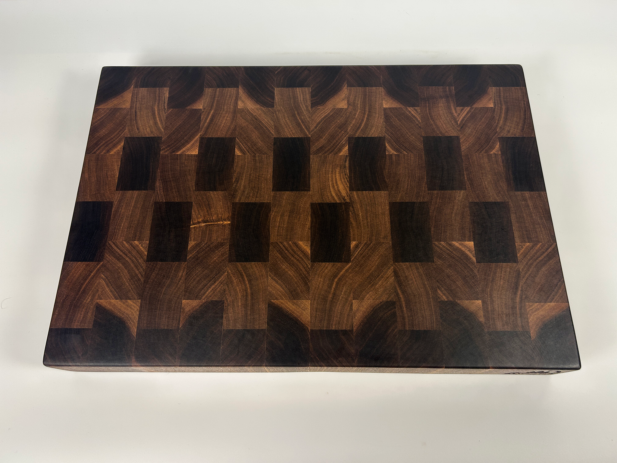 Discover the charm of "Stepping Stones," an end-grain cutting board crafted from rich walnut hardwood. Its unique pattern evokes the feel of a winding path of dark stones weaving through gentle waves of walnut grain—perfect for a playful touch in your kitchen. Durable and stylish, it turns every meal prep into a little stroll down a familiar path.