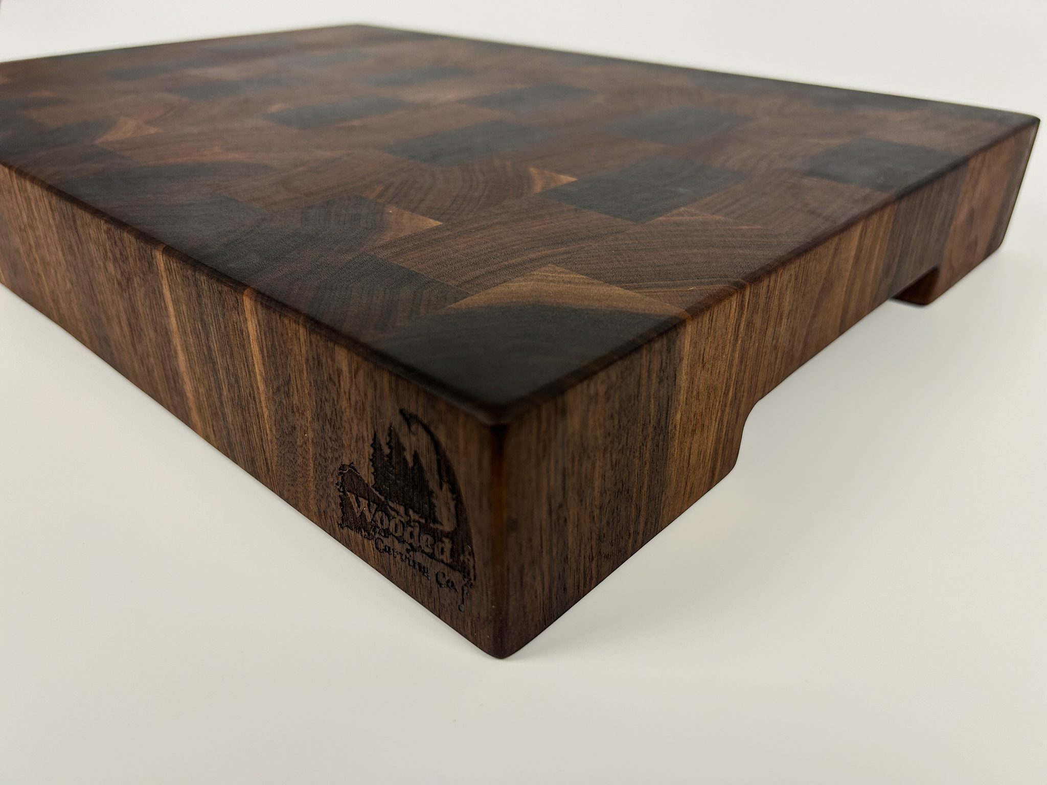 Top of the Block is Wooded’s premier collection of single-edition pieces. Each board is crafted in a meticulous process that begins with selecting exquisite lumber specimens; opting for thicker (more costly and stable) pieces of raw lumber with visually interesting contrasts. We then eye these captivating grain patterns and arrange them in a way that’s inspired by their contrast. The end result is a block that is minimally complex, visually stunning, with more stable wood and stout construction.