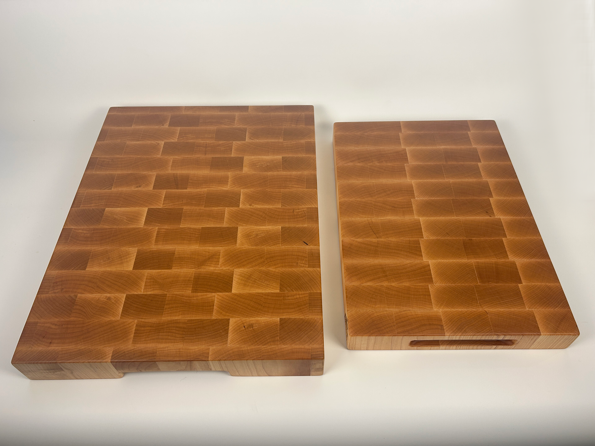 The Maple is a delightfully thick cutting board made entirely from sturdy maple wood. Available in 4 sizes, ranging from our 2-inch thick "Long" board, to the 2.5-inch thick "Huge" block, it’s ready to tackle any kitchen task with ease. Tough enough for serious chopping yet charming enough to brighten your countertop, this board adds a playful twist to your cooking routine.