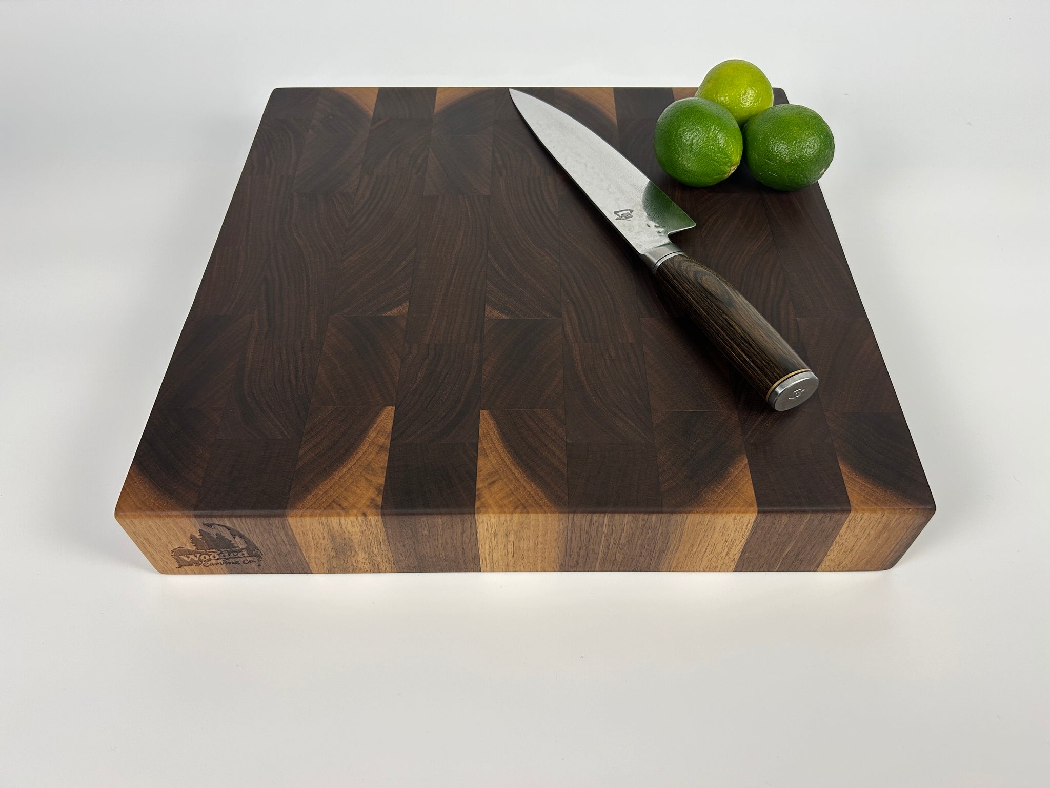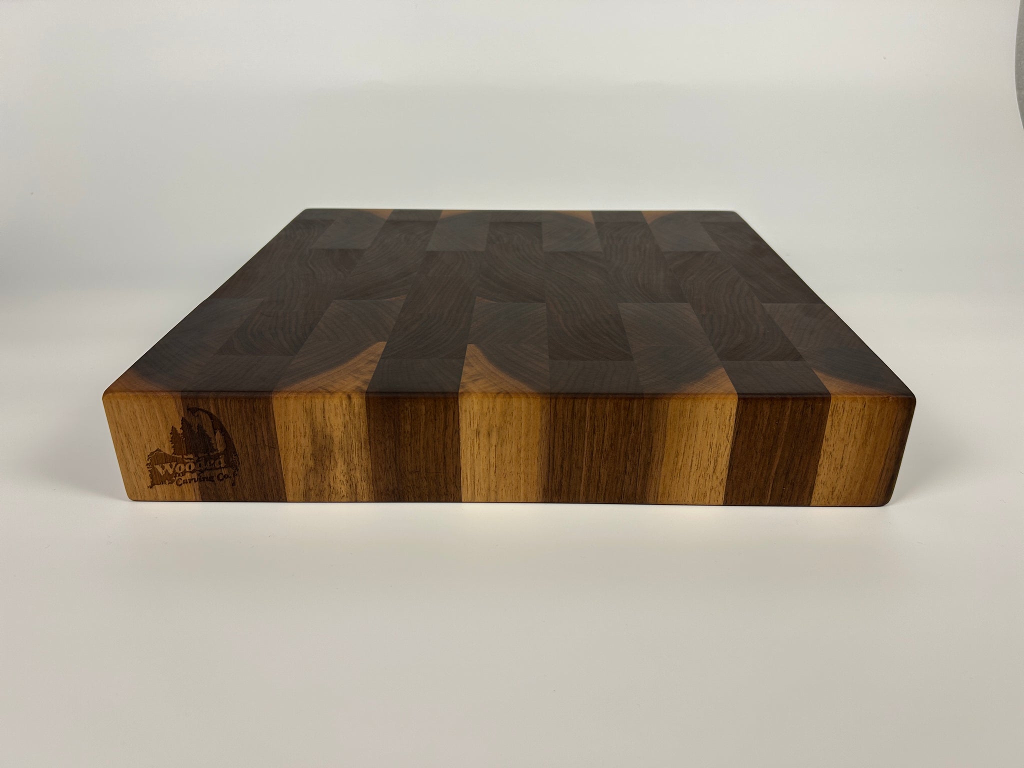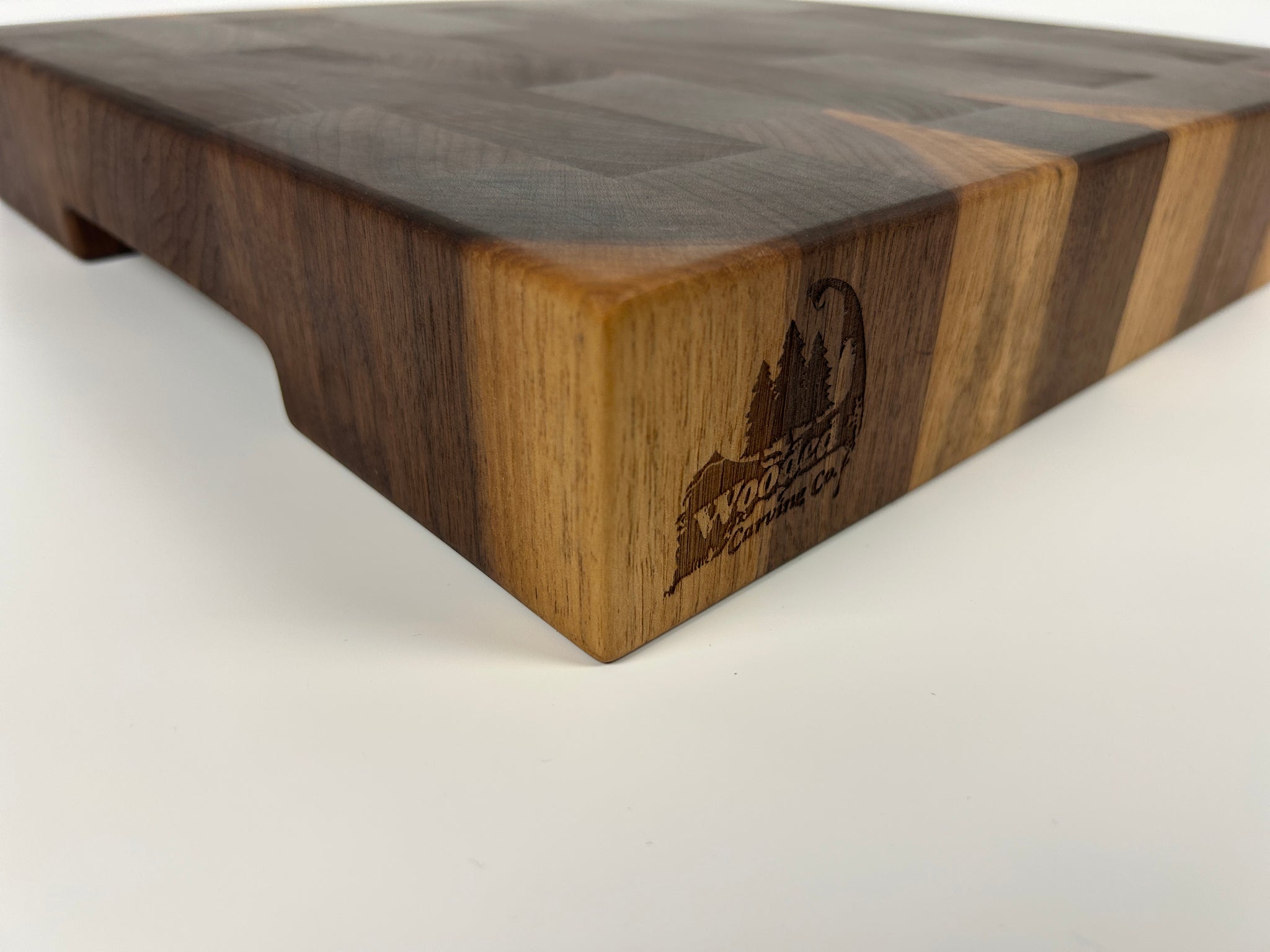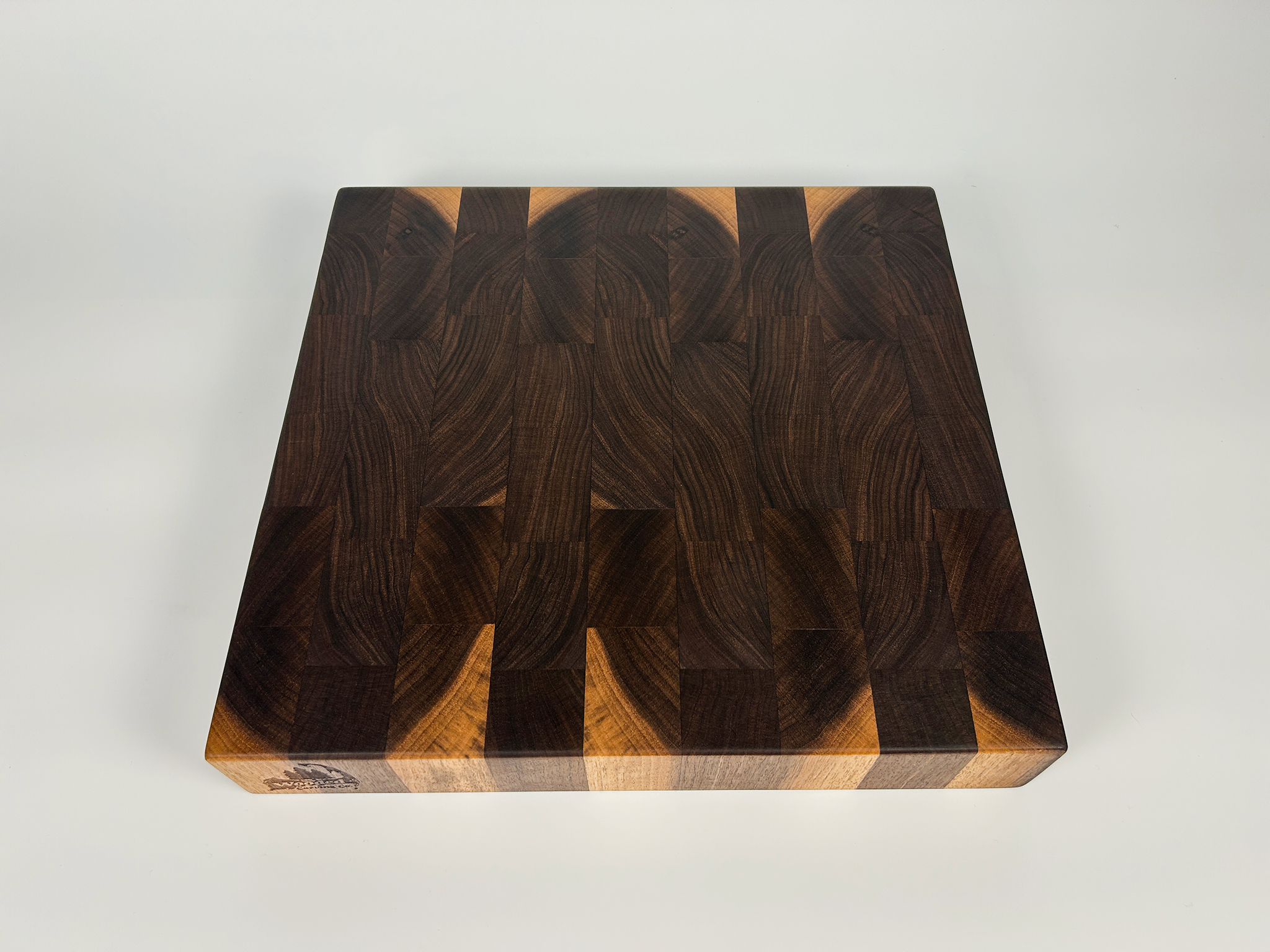Top of the Block is Wooded’s premier collection of single-edition pieces. Each board is crafted in a meticulous process that begins with selecting exquisite lumber specimens; opting for thicker (more costly and stable) pieces of raw lumber with visually interesting contrasts. We then eye these captivating grain patterns and arrange them in a way that’s inspired by their contrast. The end result is a block that is minimally complex, visually stunning, with more stable wood and stout construction.